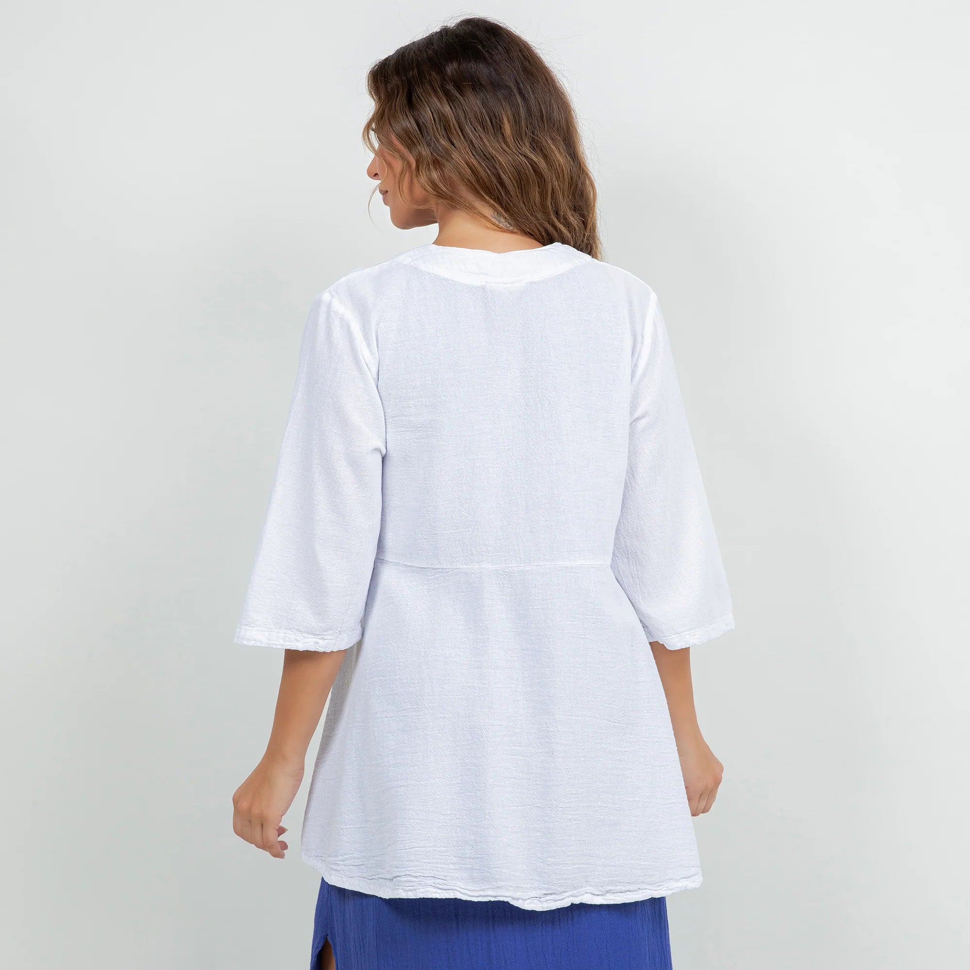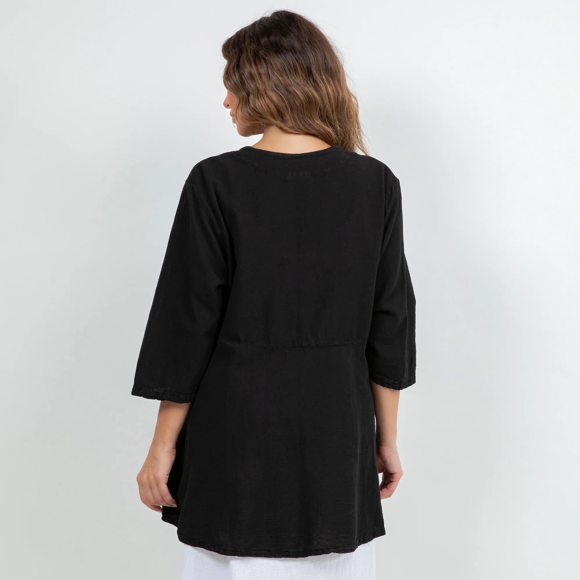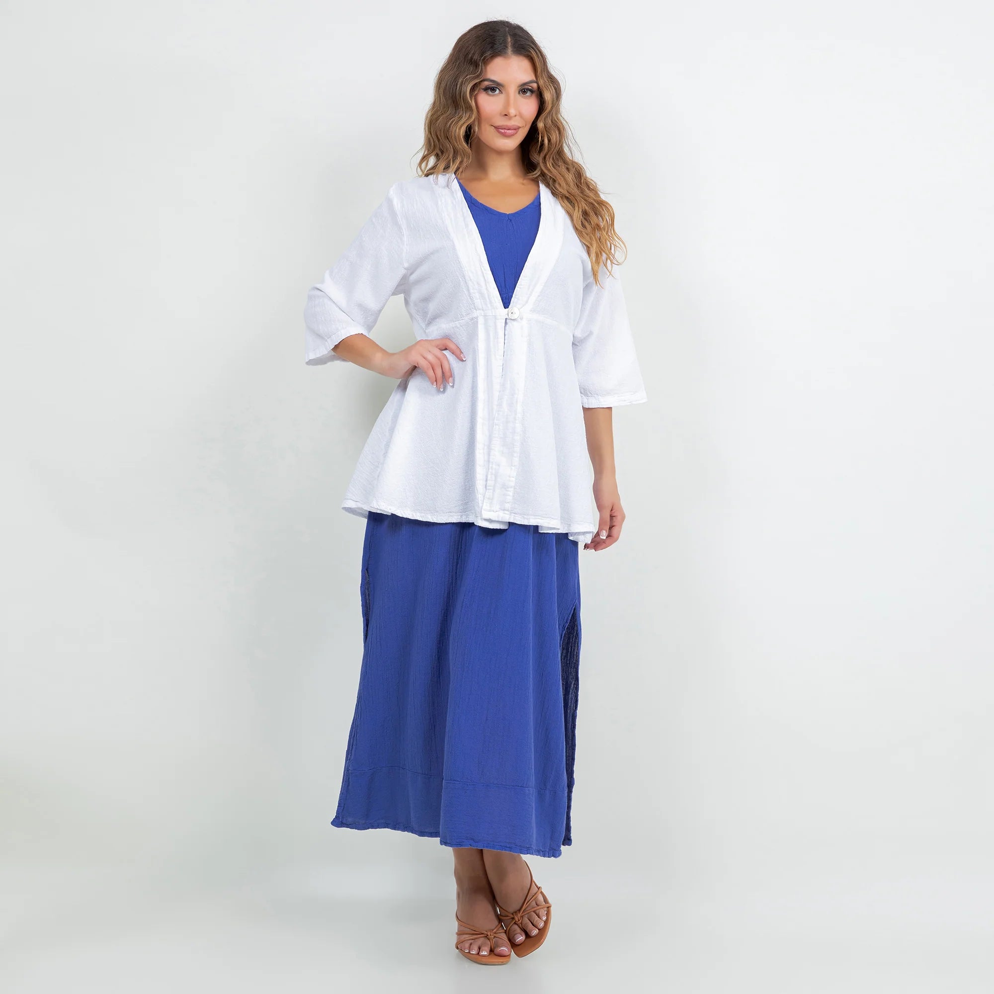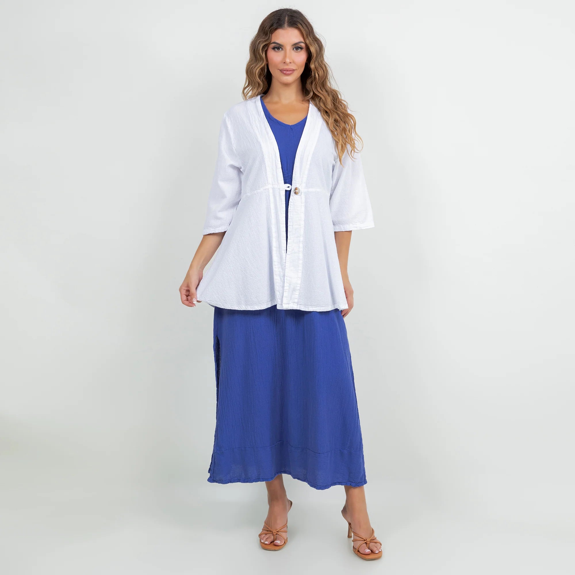 The Chinatown is a 3/4 sleeve, single button enclosure style jacket that is flattering for all!